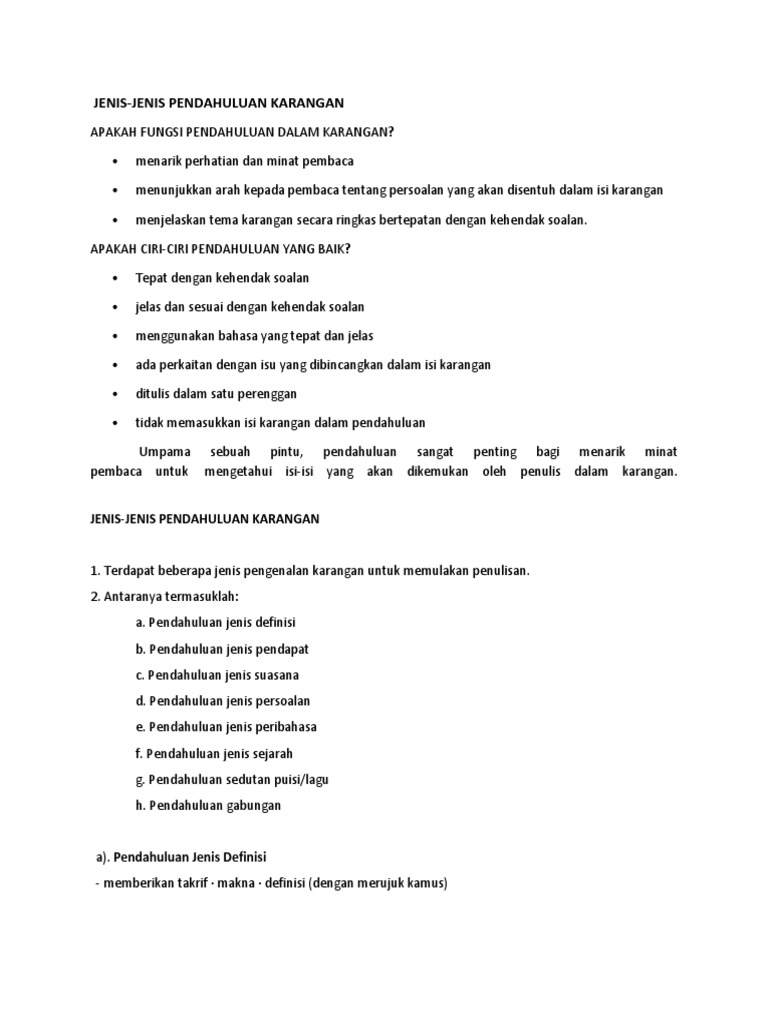10 Jenis Pendahuluan Karangan Umum Pdf